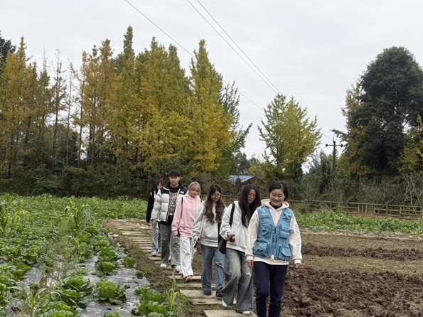 11月11日参访当天,参与实践的学生以“未来主理人”身份,深度考察民宿的建筑空间、田园业态与运营模式,亲身感受“民宿+田园”融合发展的创新实践。在专题讲解环节,师生共同探讨了2025年民宿行业“县域崛起、绿色赋能与科技重构”的新趋势。随后,同学们围绕“X+民宿”创新模式展开头脑风暴,涌现出多项兼具创意与可行性的项目构想,比如“共享农场主计划”“青年理想社区营造计划”,以及如何运用新媒体技术打造“田野栖居”网红 IP。青年学生的创意风暴和金点子获得企业方的高度赞扬。