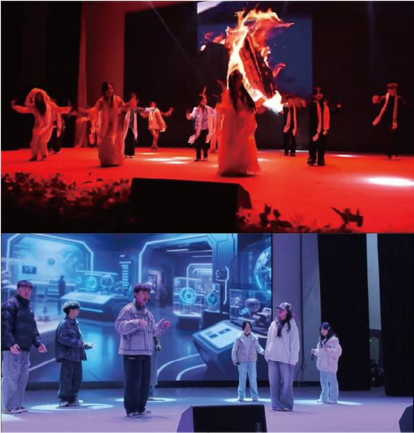 在舞台表现上面,从戏剧表演的动作设计、走位到表情,全部是演员们通过独立思考再进行团队讨论而成的。这极大地锻炼了学生的批判性思维和艺术表达力。